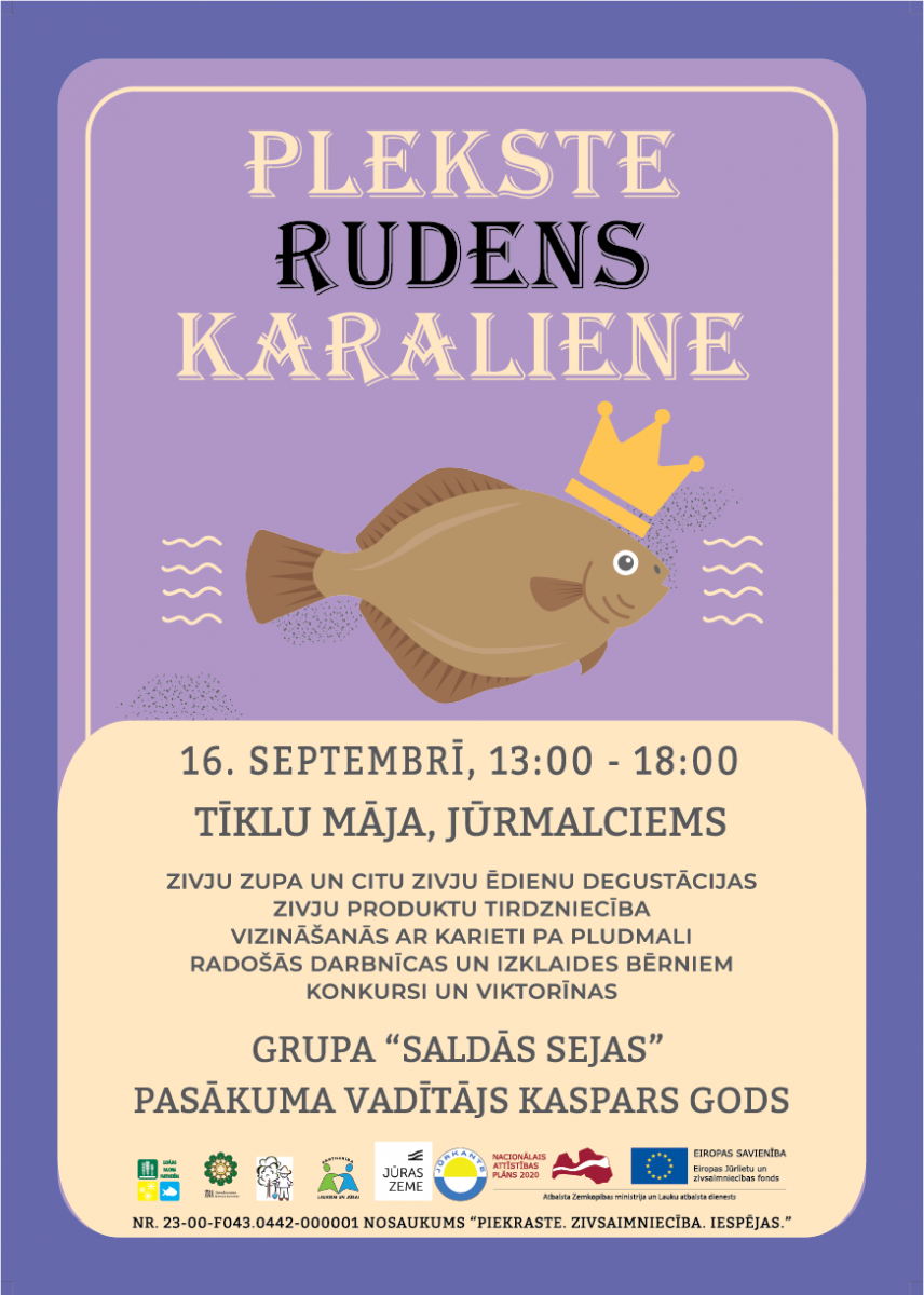 “Plekste – rudens karaliene” ielūdz jūs visus uz svētkiem Jūrmalciemā, lai popularizētu piekrasti un zvejnieku arodu, aicinām uz pasākumu, kurš būs aizraujošs visai ģimenei šī gada 16. septembrī Jūrmalciema tīklu māja “Piestātne”.