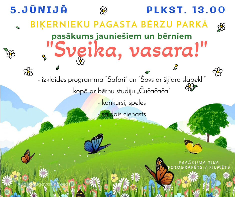 Biķernieku pagasta Bērzu parkā pasākums bērniem un jauniešiem: "Sveika, vasara!".