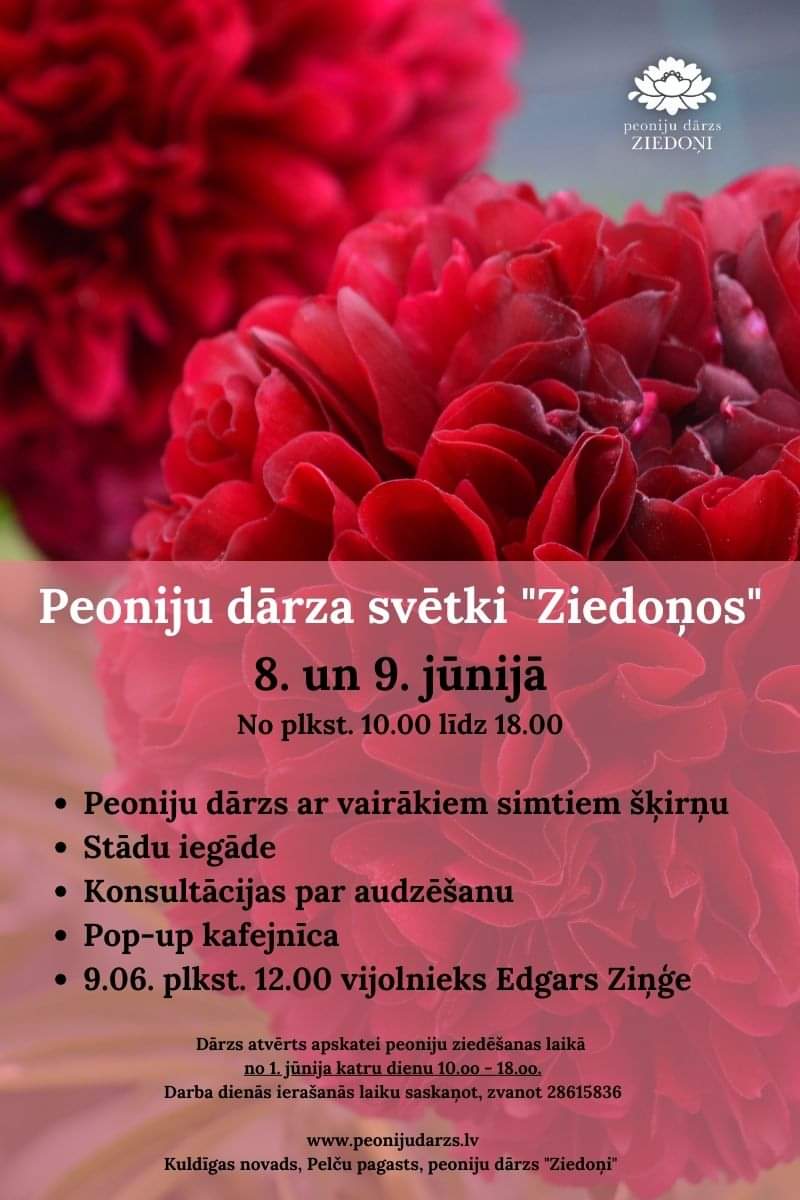 Peoniju dārzs "Ziedoņi" 8.un 9. jūnijā aicina uz Peoniju dārza svētkiem.