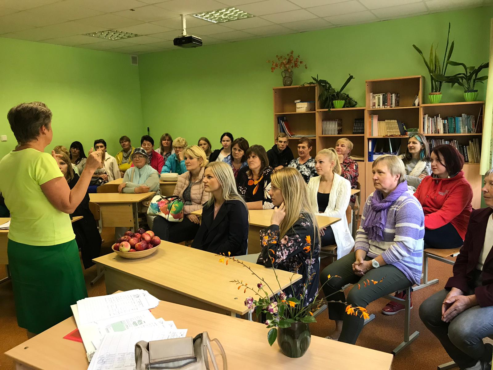 Noslēgumā devāmies uz Jaunlutriņu pamatskolu, lai tiktos ar Jaunlutriņu viedā ciema iniciatīvas grupu un tās vadītāju, Druvas novada pagasta pārvaldes vadītāju Ilzi Kļavu. Tikšanās gaitā Jaunlutriņu viedā ciema īstenotāji pastāstīja par īstenotajām aktivitātēm un to, kā 2019. gada vasarā īstenojuši viedā ciema idejas stiprināšanas projektu “Jauna kleita Jaunlutriņu skolai”. Projekta ietvaros, brīvprātīgajā darbā iesaistot Jaunlutriņu un Šķēdes pagastu iedzīvotājus, visu paaudžu skolas absolventus un viedā ciema idejas atbalstītājus – tika atjaunota, skaisti nokrāsota Jaunlutriņu skolas fasāde, tādējādi apliecinot sabiedrības atbalstu izglītības ilgtspējīgai attīstībai laukos un dāvinot skolai „jaunu kleitu” 180 gadu jubilejā. Īstenotā projekta ietvaros noorganizētas 22 talkas, kurās piedalījušies 196 dalībnieki.