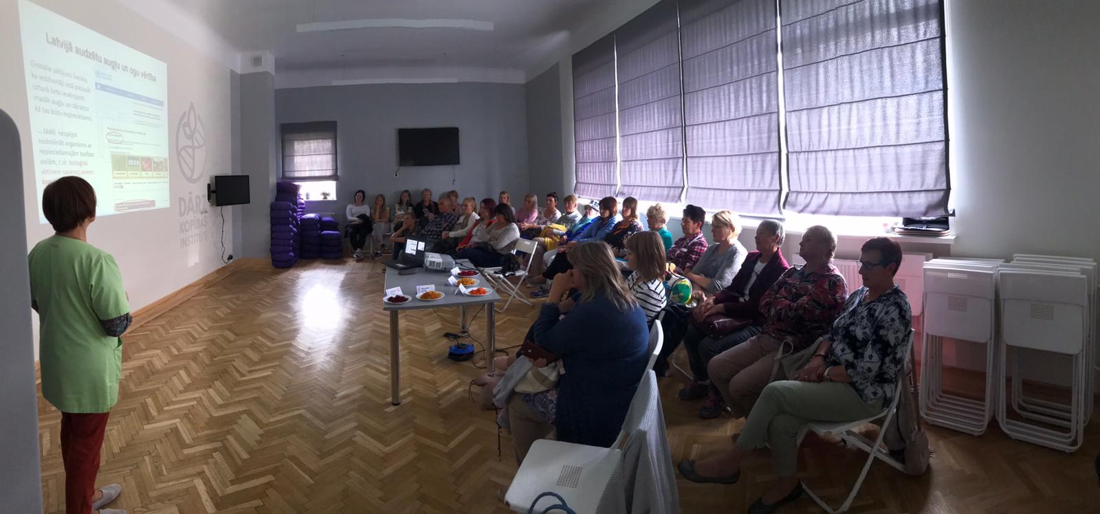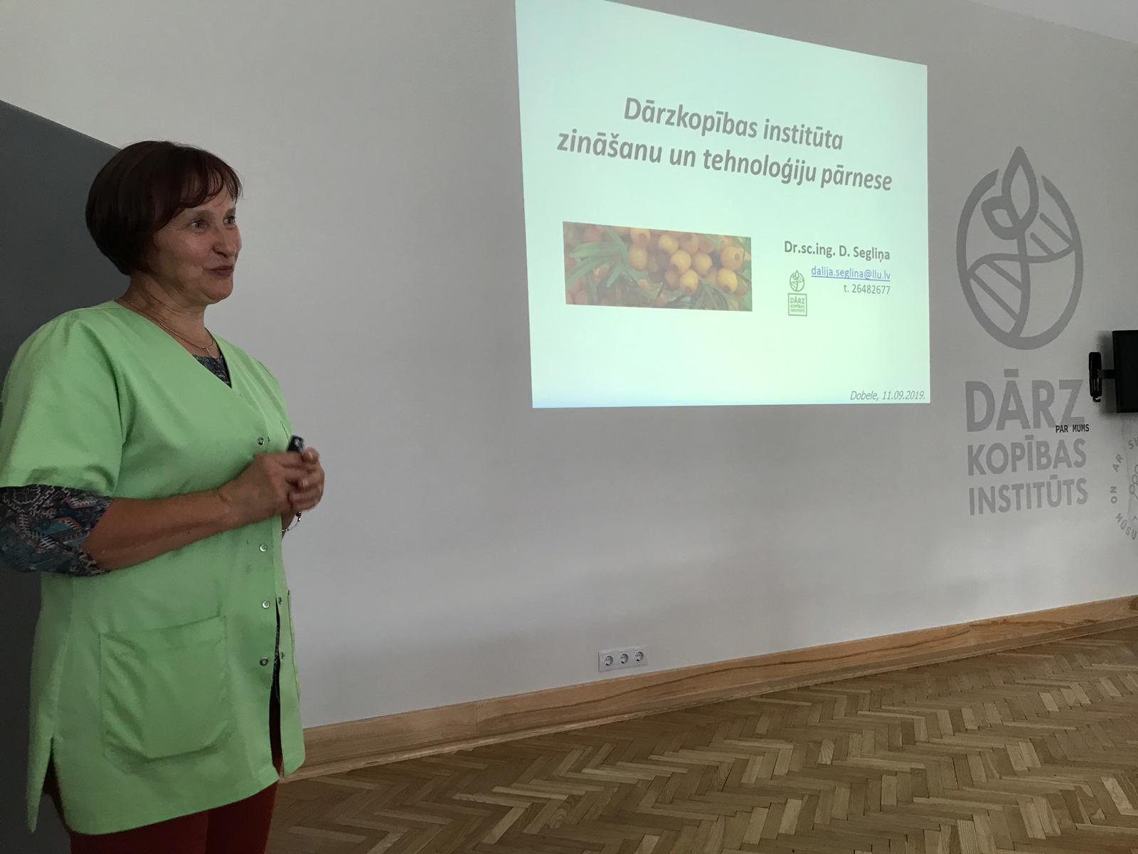Izsmeļoši pastāstot un uzskatāmi parādot institūta plašajā dārzā, vadošā pētniece iepazīstināja ar dārzkopības institūtā radītajām dažādu augļukoku šķirnēm. Institūtam ir daudzu gadu pieredze kvalitatīvu un ražīgu šķirņu radīšanā.
