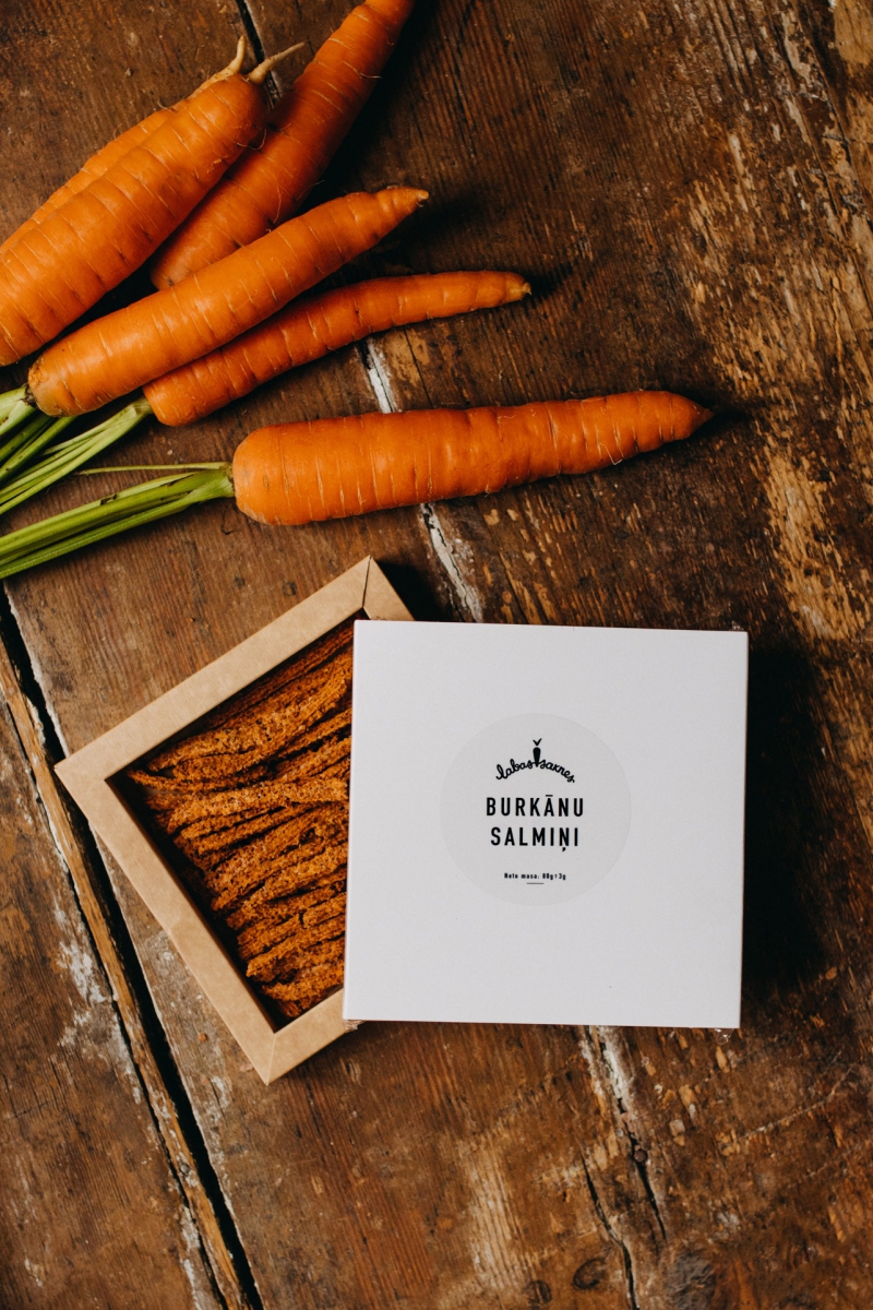 Ģimenes uzņēmums “Labas saknes” Cēsīs ražošanā izmanto bezatlikumu tehnoloģiju. Galvenais produkts ir burkāns, no kura tiek izmantots pilnīgi viss. Nelielajā ražotnē tiek spiesta burkānu sula, kas tiek realizēta tepat Cēsīs. No sulas spiešanas procesā pāri palikušajiem burkānu biezumiem tiek gatavoti veselīgie čipsi – trīs dažādu garšu sāļie varianti: ar sarkano kāpostu, ar spinātiem, kale kāpostiem, dillēm, pētersīļiem un pikantais variants ir ar papriku un tomātiem.