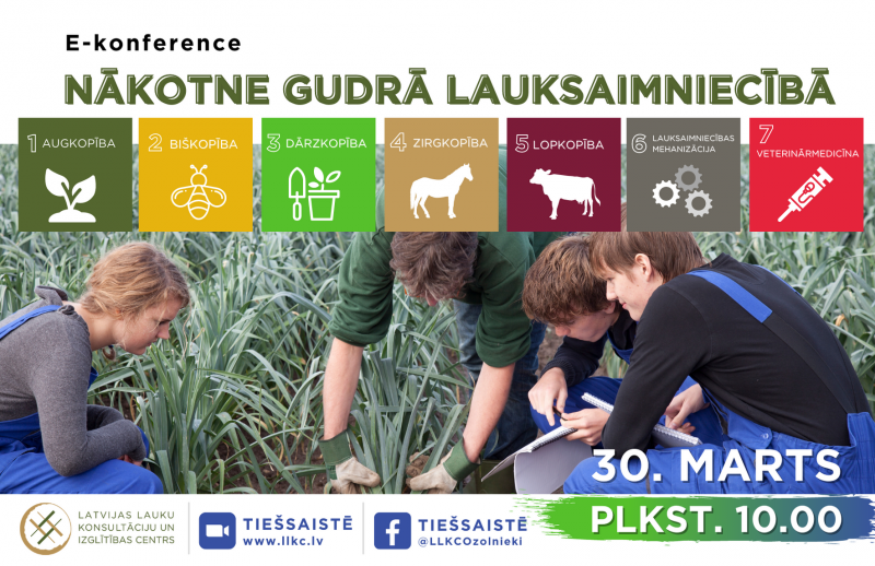 Lai veicinātu skolu jauniešu informētību par iespējām jau pēc 9. klases iegūt profesionālu izglītību un ātrāk iekļauties darba tirgū, kā arī mudinātu profesionālās izglītības iestādes fokusēties uz mūsdienu darba tirgū pieprasītu mācību piedāvājumu, Latvijas Lauku konsultāciju un izglītības centrs (LLKC) martā rīkoja tiešsaistes konferenci "Nākotne gudrā lauksaimniecībā". Konferencē runātais pieejams arī ierakstos.
