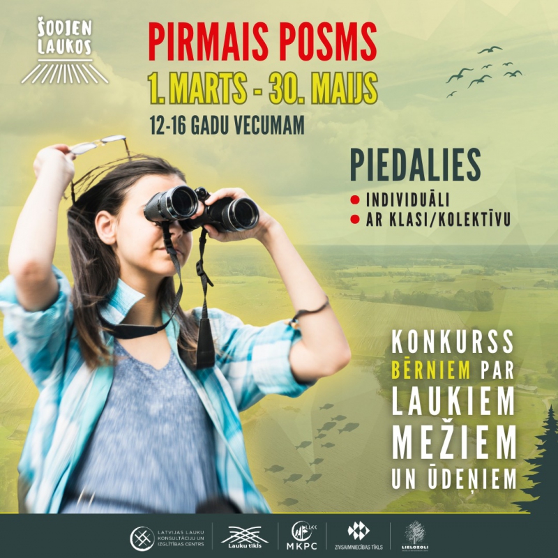Jau devīto gadu skolu jauniešus un bērnudārzu audzēkņus iepazīt laukus, mežus un ūdeņus aicina konkurss “Šodien laukos”, ko organizē Latvijas Lauku konsultāciju un izglītības centrs (LLKC).
