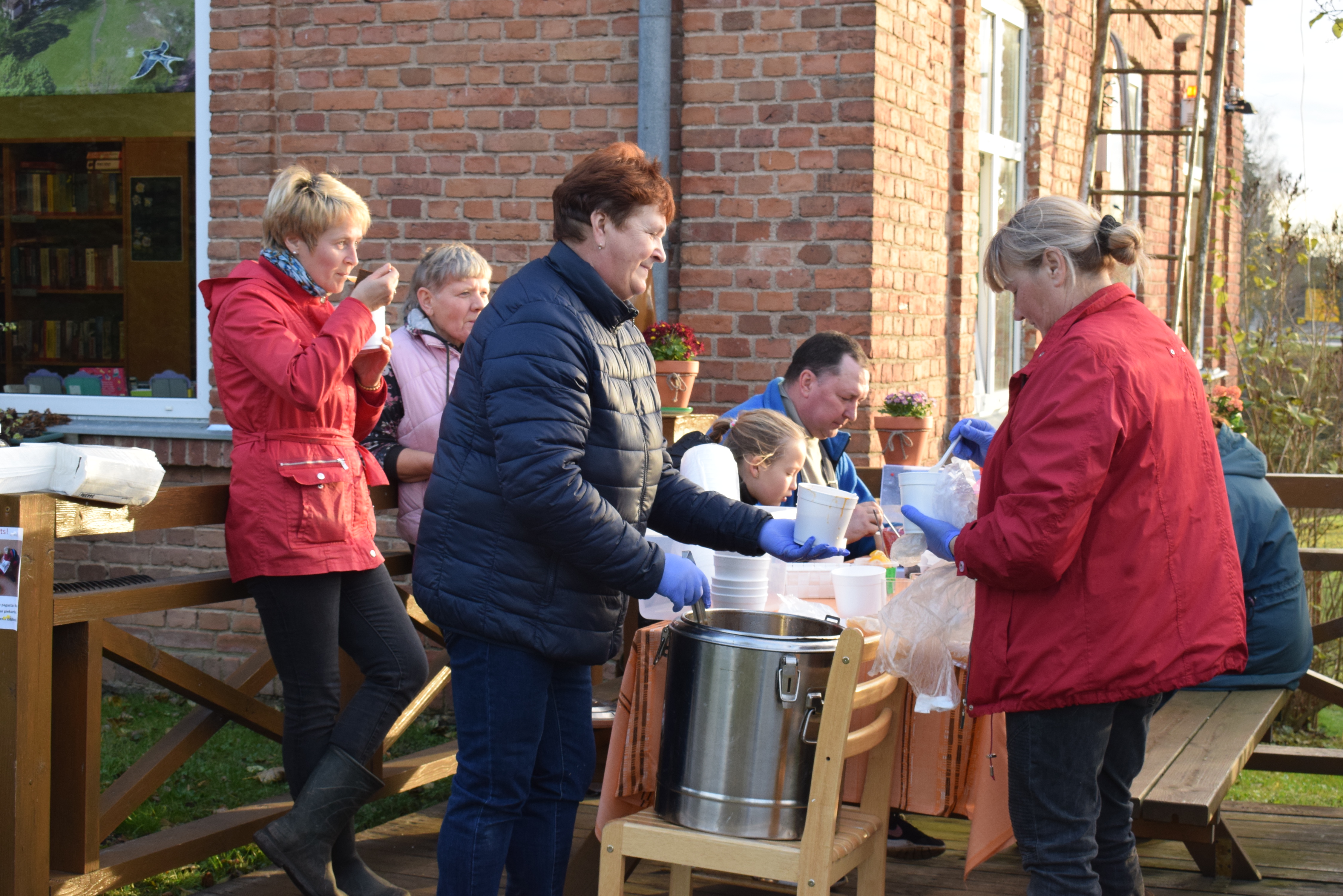 Kopā ar citiem strādāja Skaistkalnes vidusskolas audzēknes Līga Elizabete Juškēviča un Ketija Znotiņa. Pieci talcinieki pārstāvēja Kurmeni. Laima Indriķe, Skaistkalnes pagasta novadpētniecības centra «Novadnieki» krājuma glabātāja, neslēpa sajūsmu par satikšanos ar klasesbiedru, kurmenieti Pēteri Anspoku, kurš centīgi darbojās ar trimeri. «Kādus 35 gadus nebijām redzējušies!» viņa izsaucās.