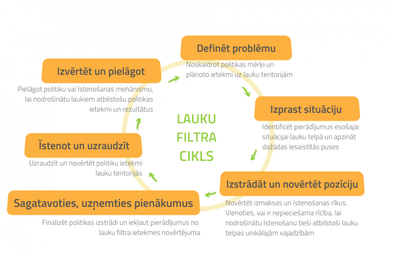Iedzīvotāju skaita samazināšanās Latvijas lauku teritorijās ir viena no augstākajām Eiropā, arī ierobežota vai vajadzībām neatbilstoša pakalpojumu pieejamība un infrastruktūra ir laukus raksturojoša situācija. Līdzīgu izaicinājumu mazināšanai un lauku iedzīvotāju vajadzībām atbilstošu politiku īstenošanai daudzās Eiropas Savienības valstīs tiek īstenots koncepts „lauku filtrs” – pieeja rīcībpolitiku izvērtējumam, lai noteiktu to ietekmi tieši uz lauku teritorijām, salīdzinot ar ietekmi uz citām teritorijām. Arvien aktīvāk izskan aicinājumi šo pieeju ieviest centralizēti visas Eiropas mērogā, mudinot uz šādu rīcību arī Latvijas politikas veidotājus un īstenotājus.