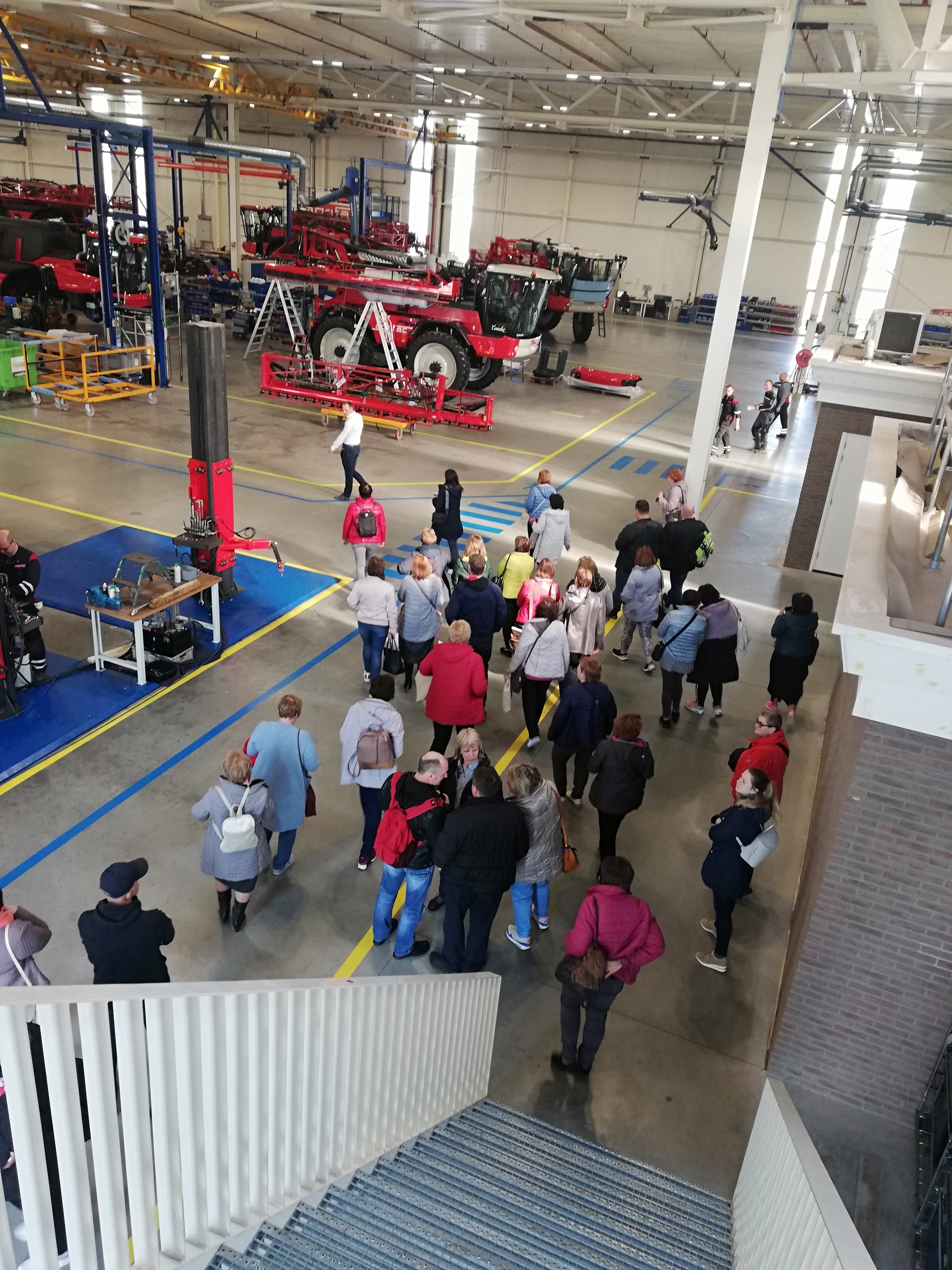 Pirmajā dienā tika apmeklēts uzņēmums “Agrifac”, kurš ražo augstas kvalitātes lauksaimniecības tehniku. Neskatoties uz faktu, ka pasaulē 2050. gadā dzīvos 9 miljardi cilvēku, jāspēj saražot pietiekami daudz kvalitatīvas pārtikas. Tā kā zemes resursu ir tik, cik ir, tad jāspēj palielināt ražība esošajās saimniecībās. “Agrifac” piedāvā tehnoloģijas un iekārtas, kas izveidotas, balstoties uz vispārzināmām pamatlietām lauksaimniecībā, apvienojumā ar inovatīvām precīzās lauksaimniecības tehnoloģijām. Izmantojot uzņēmuma ražotos smidzinātājus, iespējams izsmidzināt augu aizsardzības līdzekļus (AAL) tieši tik, cik nepieciešams augam vai atsevišķai lauka daļai, vai arī tikai daļai augu, tādējādi ietaupot līdzekļus un palielinot ražu. Pārdomāta AAL lietošana, pateicoties inovatīvajām tehnoloģijām, būtiski ietaupa saimniecības resursus, jo, iespējams, tikai daļai laukaugu būs nepieciešama apstrāde. Nav jāapsmidzina viss lauks, kā to bieži vien novērojam saimniecībās. “Agrifac” ražoto iekārtu moto ir 4E – efektīvi, ekonomiski, ergonomiski, ekoloģiski. Tas nozīmē, ka tās strādā, izmantojot labāko programmu piedāvāto risinājumu laukaugiem, ir saimniecībai ekonomiskas, palīdzot ietaupīt pat līdz 50% resursu, iekārtas ir ergonomiski aprīkotas, lai darbiniekam radītu komfortablus darba apstākļus un arī ekoloģiskas – neradot papildu piesārņojumu videi. Sekojot jaunākajām inovācijām un tehnoloģiju uzlabojumiem, iespējams palielināt uzņēmuma klientu loku, uzklausīt to vajadzības un rast risinājumus. Katrai saimniecībai ir iespēja iegādāties smidzinātāju tai vajadzīgajā platumā. Iekārta tiek rūpnieciski samontēta labiekārtotā ražotnē, kuru bija iespēja apskatīt arī grupas dalībniekiem. Ražotnē tiek nodrošināta vairāku līmeņu paškontrole, lai novērstu jebkādas neprecizitātes. Katrai atsevišķai operācijai ir novietotas visas nepieciešamās detaļas un dienas beigās nekas nedrīkst palikt pāri vai pietrūkt. Tādējādi tiek novērsta iespējamība, ka detaļas tiek sajauktas. Pārsteidza lielā kārtība un tīrība ražotnē. Uzņēmums uzskata, ka jāiegulda darbiniekos, lai pretī saņemtu lielāku atdevi. Darbiniekiem tiek nodrošinātas siltas komfortablas telpas, patīkama darba vide, brīvpusdienas u.c. Lielākā daļa darbinieku ir vietējie iedzīvotāji, bet ir arī daļa viesstrādnieku. Uzņēmumam “Agrifac” ir savi cukurbiešu un graudaugu lauki, kuros notiek iekārtu un tehnoloģiju izmēģinājumi. Turklāt iekārtas aprīkotas ar speciāliem čipiem, kas ļauj sekot to tehniskajam stāvoklim, pateicoties digitālajām tehnoloģijām, turklāt visā pasaulē, lai kur arī pircējs neatrastos. Klients var būt drošs, ka uzņēmums parūpēsies arī problēmu gadījumos un ieteiks, kā novērst kļūmes. Uzņēmums rīko arī izglītojošus seminārus lauksaimniekiem, līdzīgi kā LLKC.