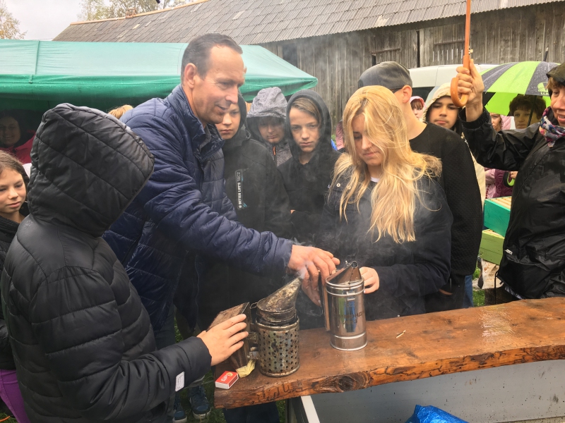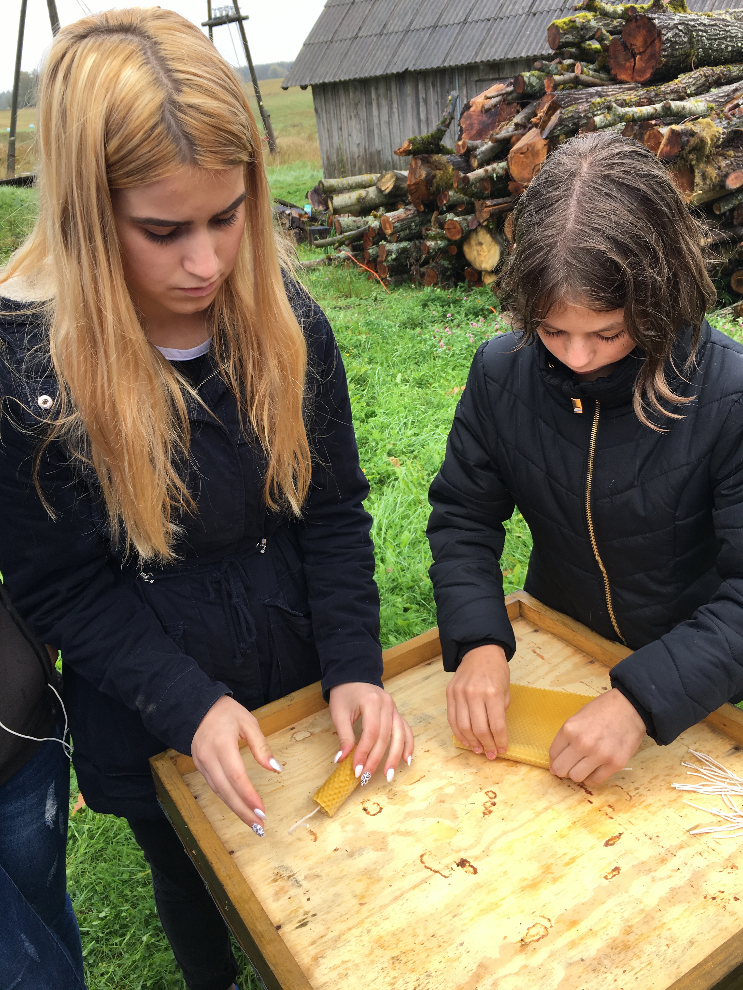 Devāmies uz Priekuļu novada Veselavas pagasta “Grāvjiem” pie biškopja Imanta Dauksta. Šī apmeklējuma mērķis bija parādīt, ka laukos var nodarboties ne tikai ar tradicionālajām nozarēm. Sākumā saimnieks Imants izstāstīja to, kā pēc ilgāka darba ārpus Latvijas nolēma nodarboties ar biškopību, cik ilgi un veiksmīgi darbojas šajā nozarē un, nonākot līdz dravai, arī par pašām bitēm un biškopības specifiku. Pēc stāstījuma sekoja praktiska darbošanās un iejušanās biškopja profesijā. Biškopis bija sagatavojis vietu praktiskajai nodarbībai un degustācijai. Skolēni varēja iemēģināt roku dūmu kannas aizkuršanā, pielaikot bitenieka tērpu, kā arī vērot, no kā sastāv strops un kā to saliek. Nobeigumā bija iespēja nodegustēt visus produktus, sākot ar medu un beidzot ar ziedputekšņiem un bišu maizi. Ja par bišu maizi ne visi izrādīja sajūsmu, tad medus bija lielā cieņā. Katram, kurš vēlējās, bija iespēja no bišu vaska šūnas uztīt sveci, kuru pēcāk arī varēja ņemt līdzi uz mājām.