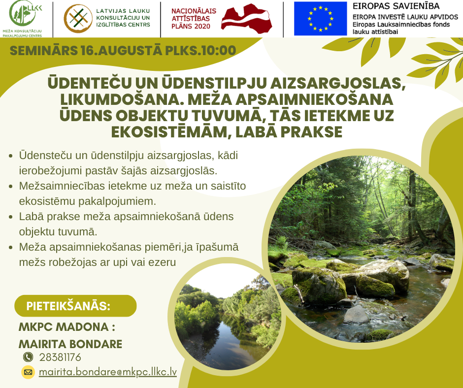 Ūdenteču un ūdenstilpju aizsargjoslas, likumdošana. Meža apsaimniekošana ūdens objektu tuvumā, tās ietekme uz ekosistēmām, labā prakse
