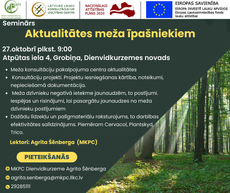 27.10.2023. | MKPC Dienvidkurzemes nodaļa | Informatīvs seminārs "Aktualitātes meža īpašniekiem"