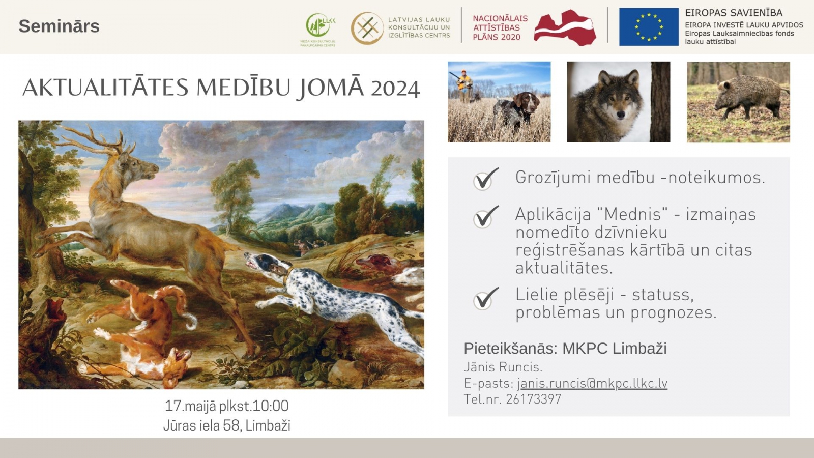 Lai piedalītos seminārā, pieteikšanās obligāta, tālr. 26173397, janis.runcis@mkpc.llkc.lv !