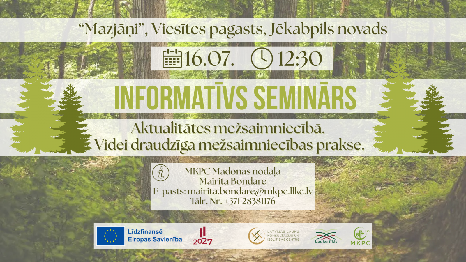 Lai piedalītos seminārā, pieteikšanās obligāta, tālr. 28381176, mairita.bondare@mkpc.llkc.lv!
