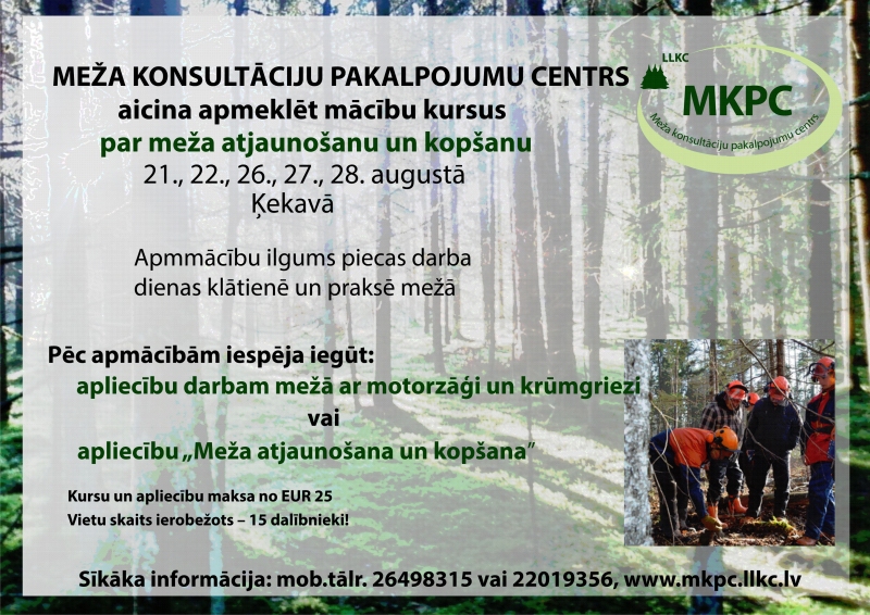 Jau šo ceturtdien un līdz augusta beigām meža īpašniekiem ir iespēja apgūt mācību kursu par meža atjaunošanu un kopšanu.