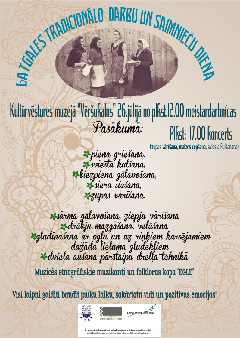 Kultūrvēstures muzejā "Vēršukalns" 26.jūlijā no plkst. 12:00 meistardarbnīcas, kur notiks: