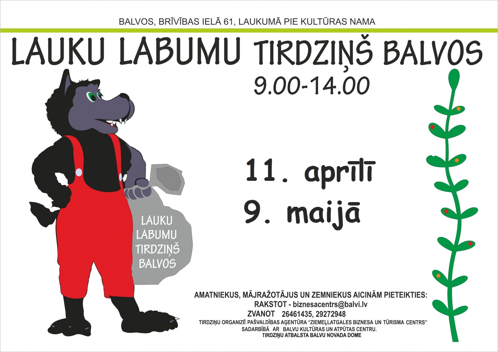 Piedalīties aicinām vietējos zemniekus, amatniekus un mājražotājus! Tirgotājiem lūgums pieteikties savlaicīgi (līdz 9. aprīlim) - Ziemeļlatgales biznesa un tūrisma centrā: rakstot uz biznesacentrs@balvi.lv vai zvanot 26461435; Tūrisma informācijas centrā: rakstot uz turisms@balvi.lv vai zvanot 29272948!