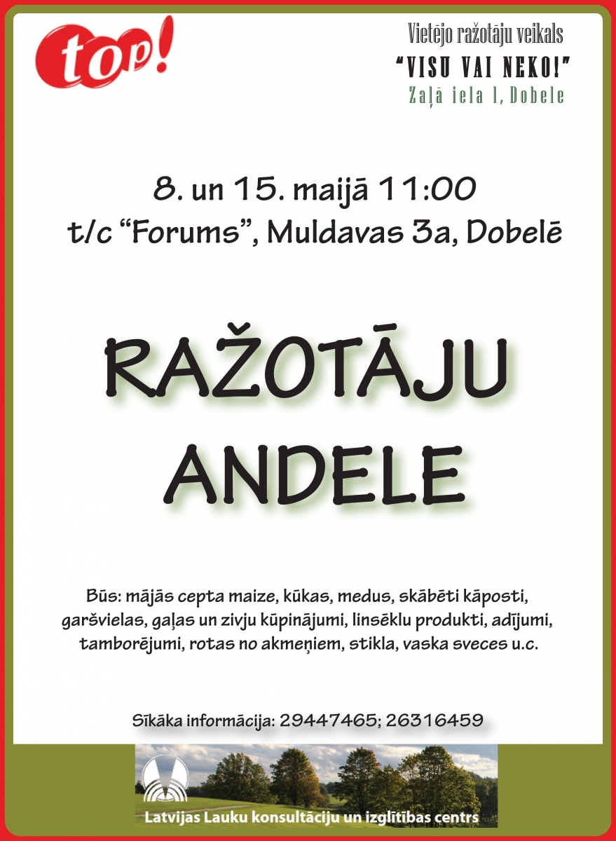 Datums: 8. Maijs, 2015 līdz 15. Maijs, 2015Reģions: ZemgaleVieta: Tirdzniecības centrsAdrese: Skatīt karti lielākā izmērā Reģions filtram: Dobeles novads
