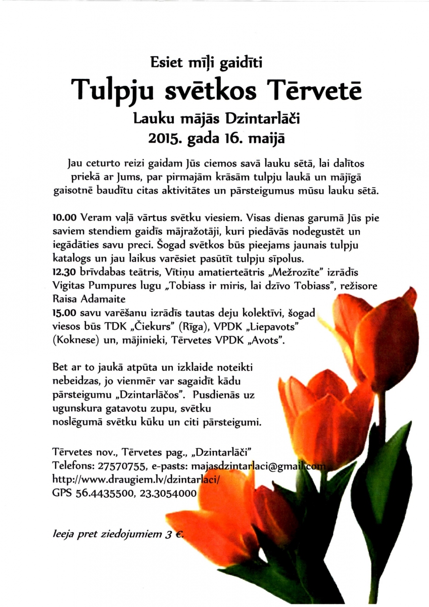 Datums: 16. Maijs, 2015Reģions: ZemgaleVieta: DzintarlāčiAdrese: Skatīt karti lielākā izmērā Reģions filtram: * Tērvetes novads
