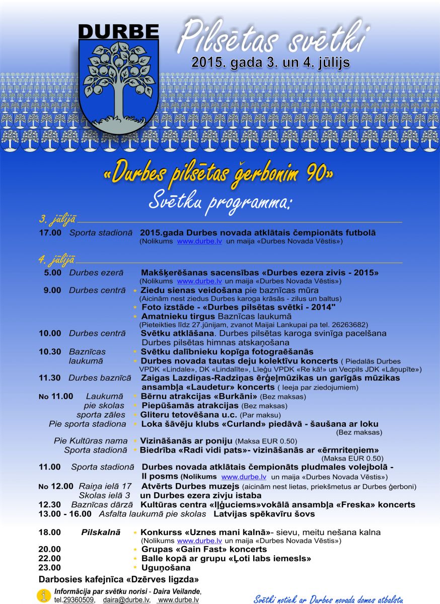 Informācija par svētku norisi - Daira Veilande, tālr. 29360509, daira@durbe.lv