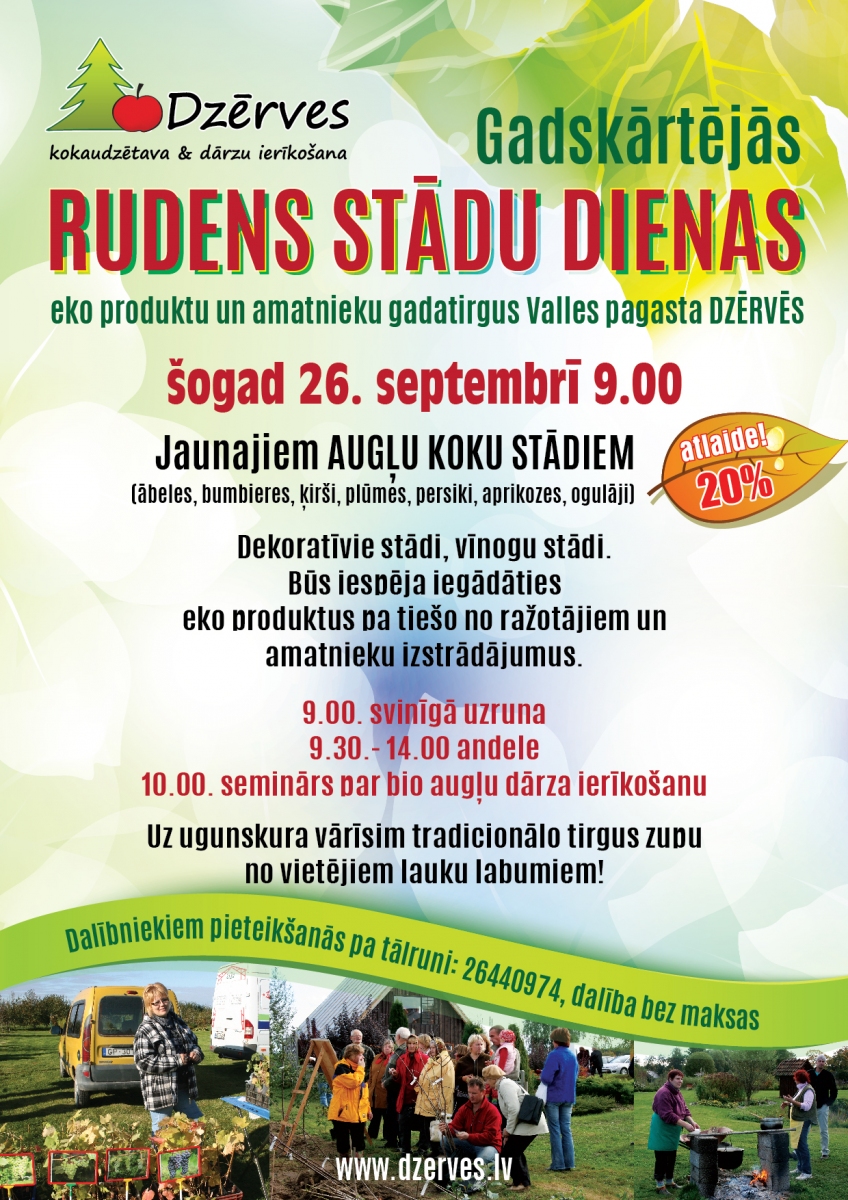 Datums: 26. Septembris, 2015Reģions: ZemgaleVieta: Valles pagastsAdrese: Skatīt karti lielākā izmērā Kontaktinformācija: E-pasts: dzerves@dzerves.lv Telefons : 26440974Reģions filtram: * Vecumnieku novads