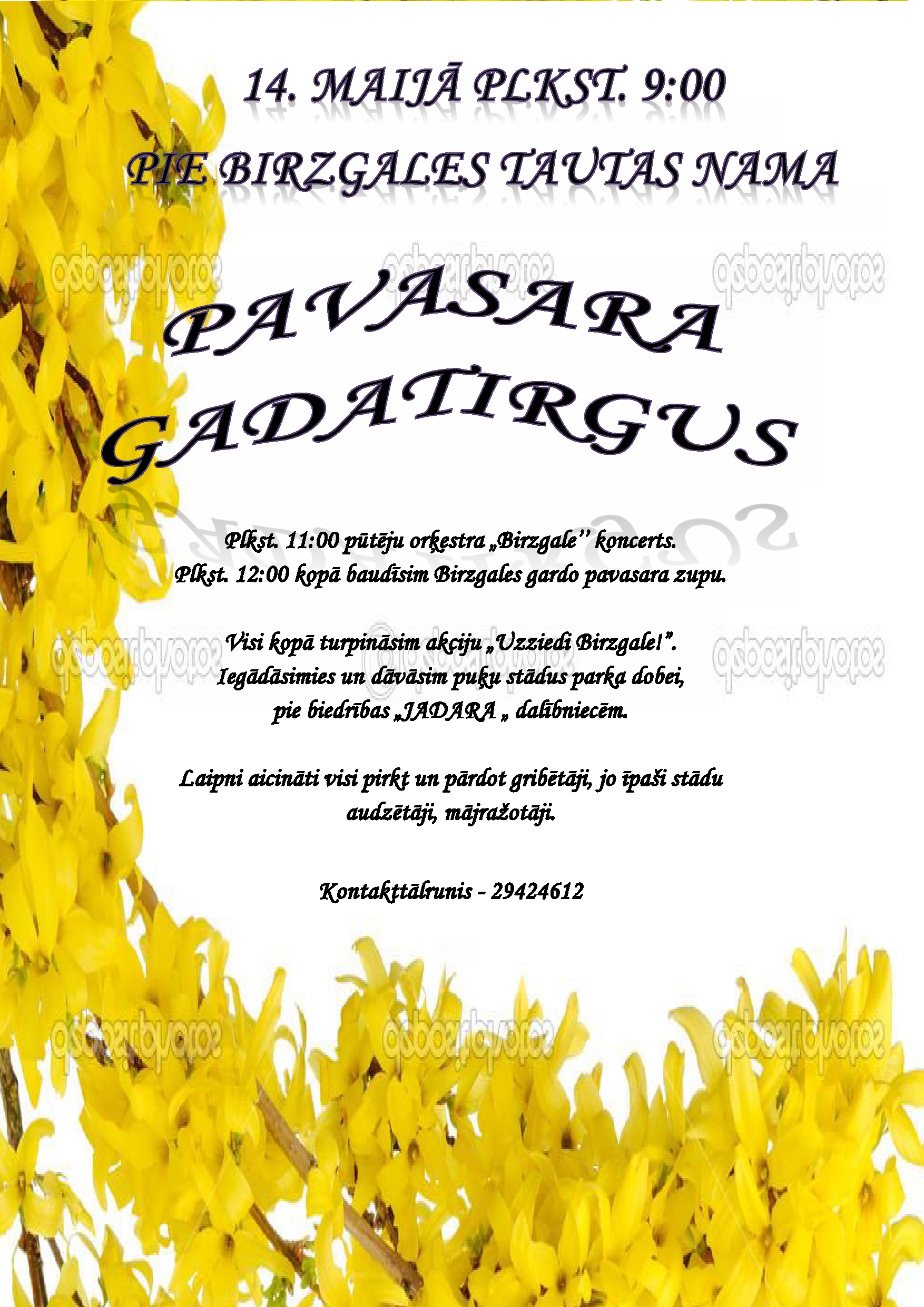 14. maijā plkst. 9:00 pie Birzgales tautas nama "Pavasara gadatirgus".