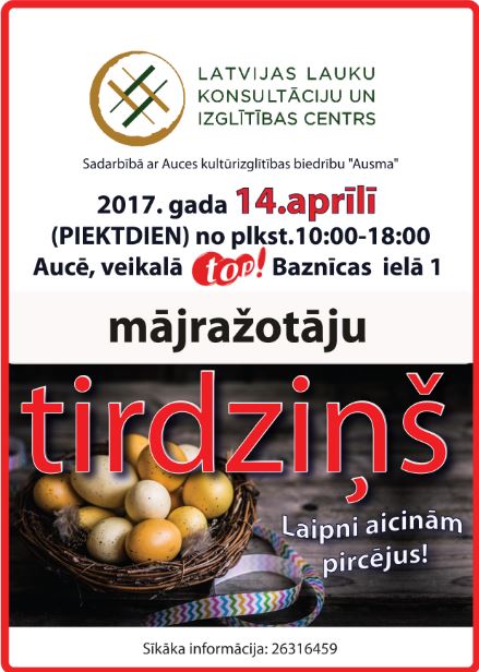 Datums: 14. Aprīlis, 2017Reģions: ZemgaleVieta: Top! veikalsAdrese: Skatīt karti lielākā izmērā Kontaktinformācija: Raimonda Ribikauska, tel. 26316459, e pasts:raimonda.ribikauska@llkc.lvReģions filtram: * Auces novads