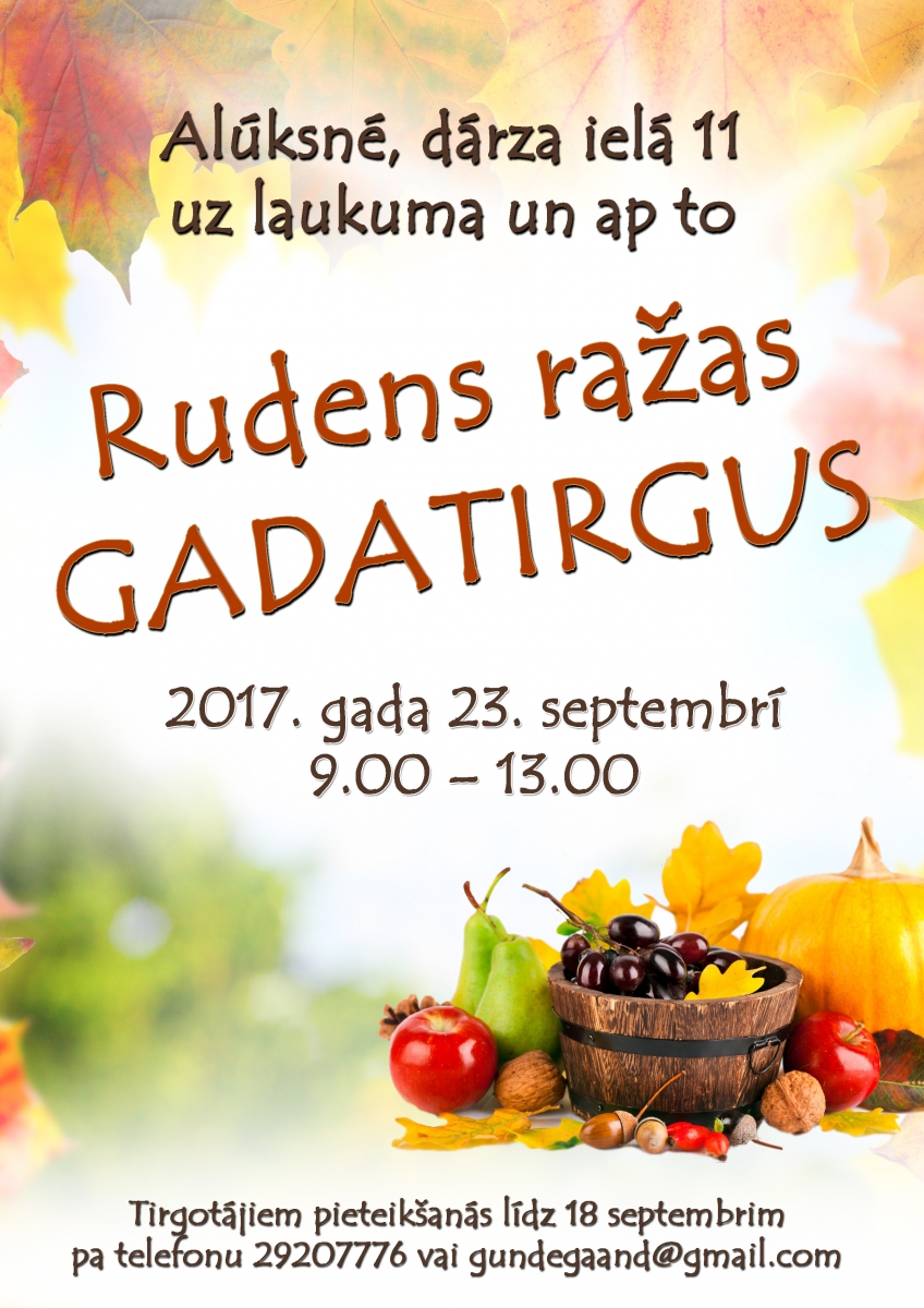 Laipni gaidīti uz bagātā rudens tirgu Alūksnē. Pieteikšanās dalībai līdz 18.septembrim.