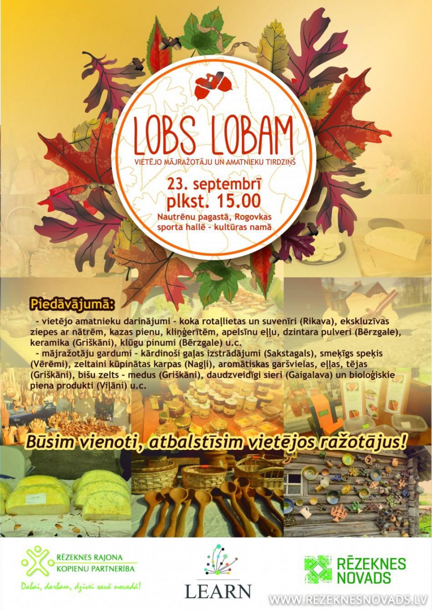 Jau vairākus gadus nodibinājums „Lauku ekonomikas attīstībai Rēzeknes novadā” regulāri organizē ikmēneša tirdziņu „Lobs lobam”. Līdz šim tas notika Rēzeknē, taču šobrīd ir radusies iniciatīva nodrošināt vietējo ražotāju produktu ērtāku pieejamību Rēzeknes novada iedzīvotājiem, periodiski organizējot tirdziņus dažādos novada pagastos. Pirmais tirdziņš „Lobs lobam” notiks 23. septembrī plkst. 15.00 Nautrēnu pagastā, Rogovkas sporta hallē – kultūras namā.