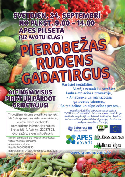 Tirgotājiem lūgums pieteikties iepriekš līdz 18.septembrim vietu rezervēšanai, jo vietu skaits ierobežots,