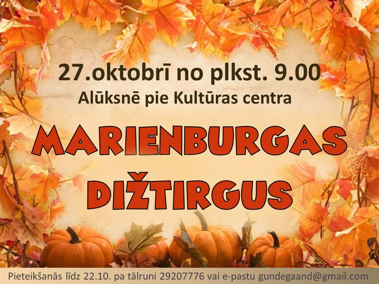 Marienburgas Dižtirgus Alūksnē 27.oktobrī plkst.9:00 pie kultūras centra. Laipni aicināti pārdot un pirkt gribētāji.