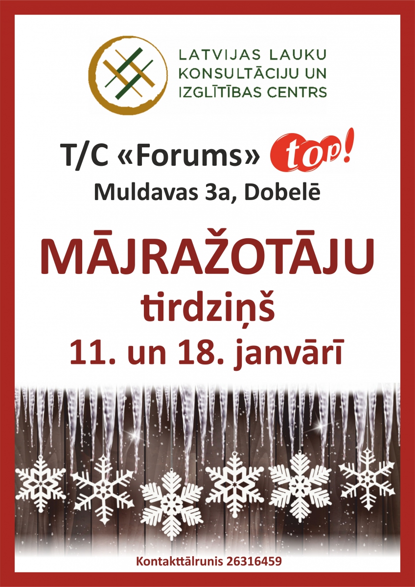 Datums: 11. Janvāris, 2019 līdz 18. Janvāris, 2019Reģions: ZemgaleVieta: Top! veikalsAdrese: Skatīt karti lielākā izmērā Kontaktinformācija: Raimonda Ribikauska, tel. 26316459, e pasts:raimonda.ribikauska@llkc.lvReģions filtram: Dobeles novads