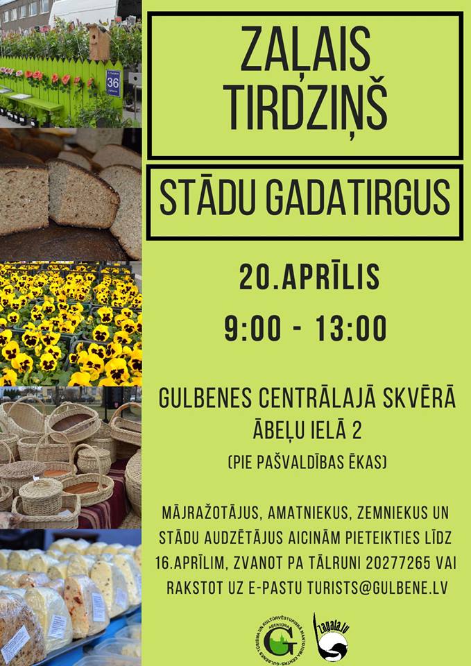 20.aprīlī Zaļais tirdziņš notiks Gulbenes centrālajā skvērā, Ābeļu ielā 2 (pie pašvaldības ēkas).