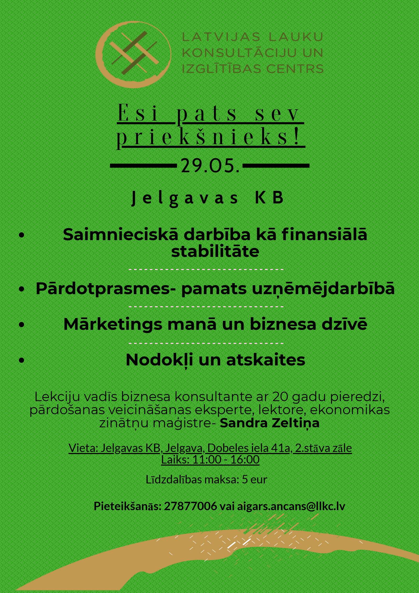 Datums: 29. Maijs, 2019Reģions: Jelgavas novadsVieta: Jelgavas konsultāciju biroja zālēAdrese: Skatīt karti lielākā izmērā Kontaktinformācija: aigars.ancans@llkc.lvPielikums: PielikumsIzmērs sandra_zeltina.png735.89 KB Kategorija: LLKCReģions filtram: Jelgava