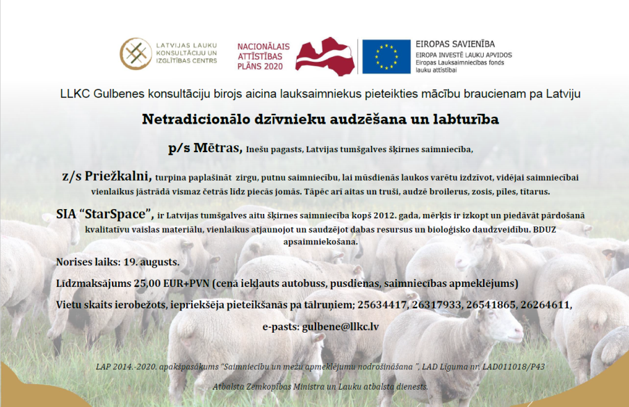 LLKC Gulbenes konsultāciju birojs aicina lauksaimniekus pieteikties mācību braucienam pa Latviju, 19. augustā