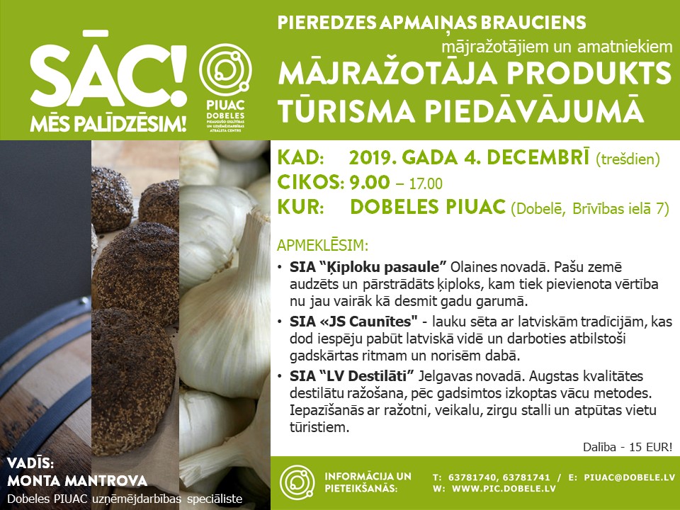 Datums: 4. Decembris, 2019Reģions: ZemgaleVieta: Dobeles Pieaugušo izglītības un uzņēmējdarbības atbalsta centrsAdrese: Skatīt karti lielākā izmērā Kontaktinformācija: Dobeles PIUAC, Tālr. 63781740,63781741 , e-pasts piuac@dobele.lvReģions filtram: Dobeles novads