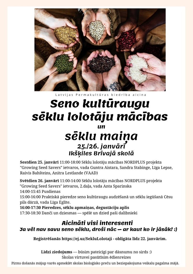 Aicināti visi interesenti uz ikgadējo sēklu maiņu Ikšķilē, kā arī jaunums - sēklu lolotāju apmācības!