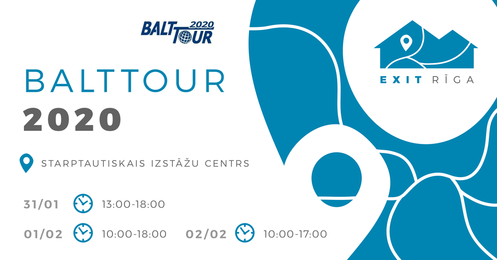 No 31. janvāra līdz 2. februārim norisināsies 27. starptautiskā tūrisma izstāde-gadatirgus “Balttour 2020”, piedāvājot hallē “Apceļo Latviju” iepazīties ar EXIT RĪGA plašajām tūrisma iespējām, kas paveras 50 km rādiusā ap Rīgu.