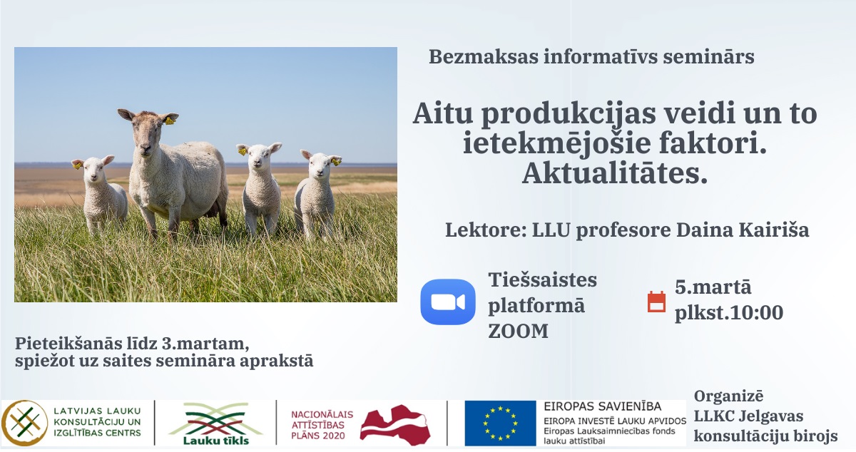 "Aitu produkcijas veidi un to ietekmējošie faktori. Aktualitātes lauksaimniekiem." tiešsaistes platformā ZOOM.