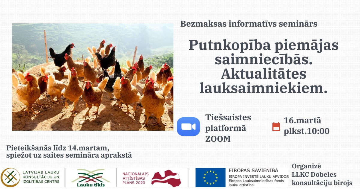 "Putnkopība piemājas saimniecībās. Aktualitātes lauksaimniekiem." tiešsaistes platformā ZOOM.