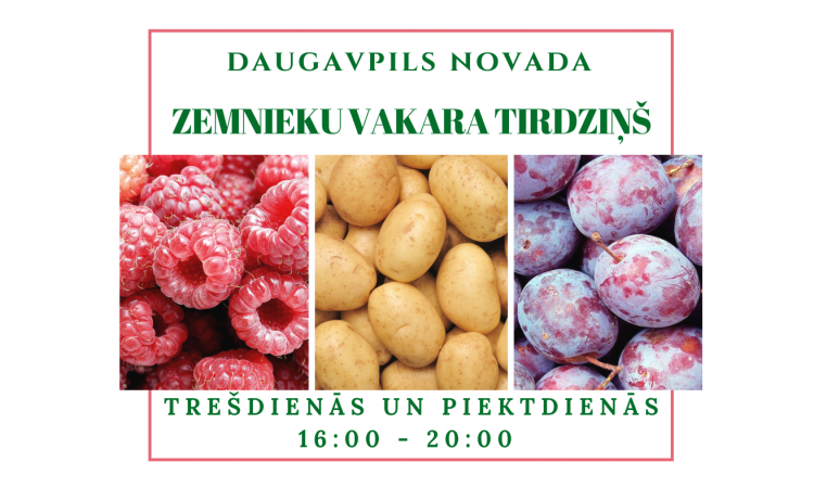 Daugavpilī darbojas zemnieku vakara tirdziņš, kas gaida apmeklētājus katru trešdienu un piektdienu no pulksten 16.00 līdz 20.00 Alejas ielā Daugavpilī, posmā starp Maizes un Kandavas ielu.