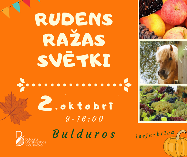 Aicinām uz Rudens Ražas svētkiem Bulduros, sestdien, 2. oktobrī no plkst. 9:00-16:00.