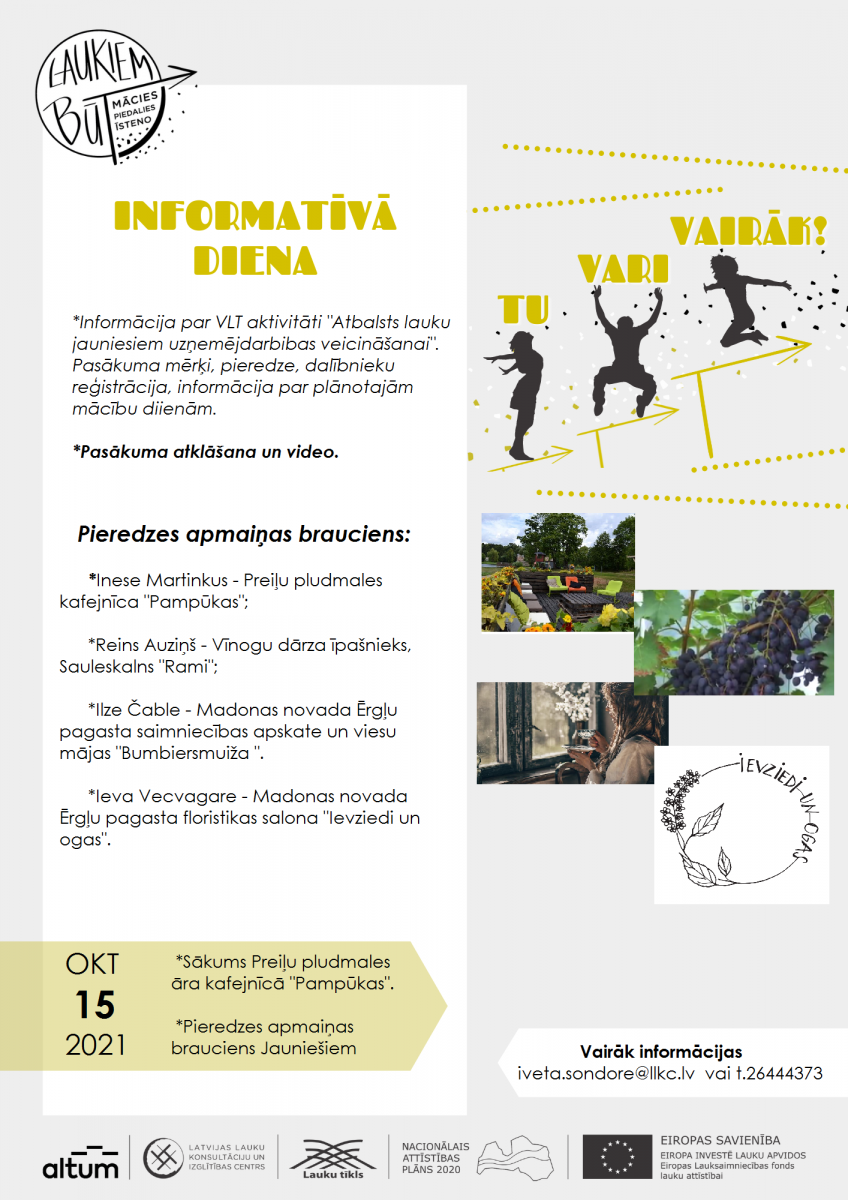 Informācija un pieteikšanās: 26444373, iveta.sondore@llkc.lv