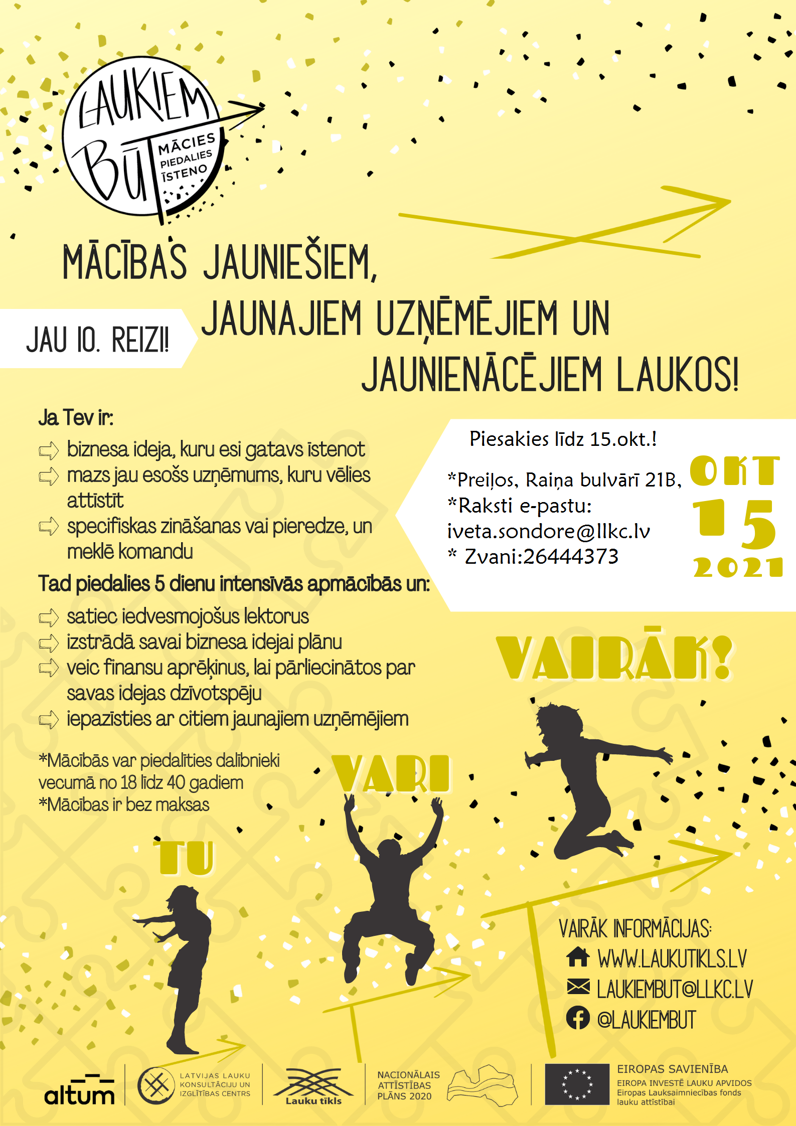 Ja tev ir biznesa ideja un tu arī vēlies piedalīties mācībās - tu neko neesi nokavējis!