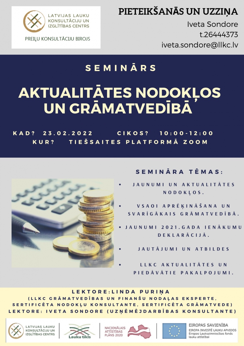 Seminārs notiks tiešsaites platformā ZOOM. 2022.gada 23. februārī. pasākuma norise no plkst.:10.00-12.00