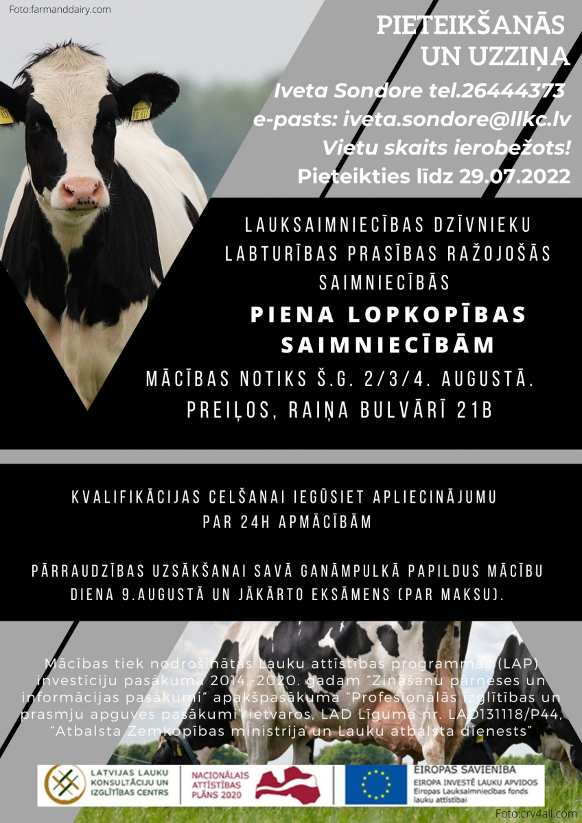 Mācības paredzētas piena lopkopības saimniecībām, kvalifikācijas celšanai un pārrauga kvalifikācijas ieguvei darbam savā ganāmpulkā.