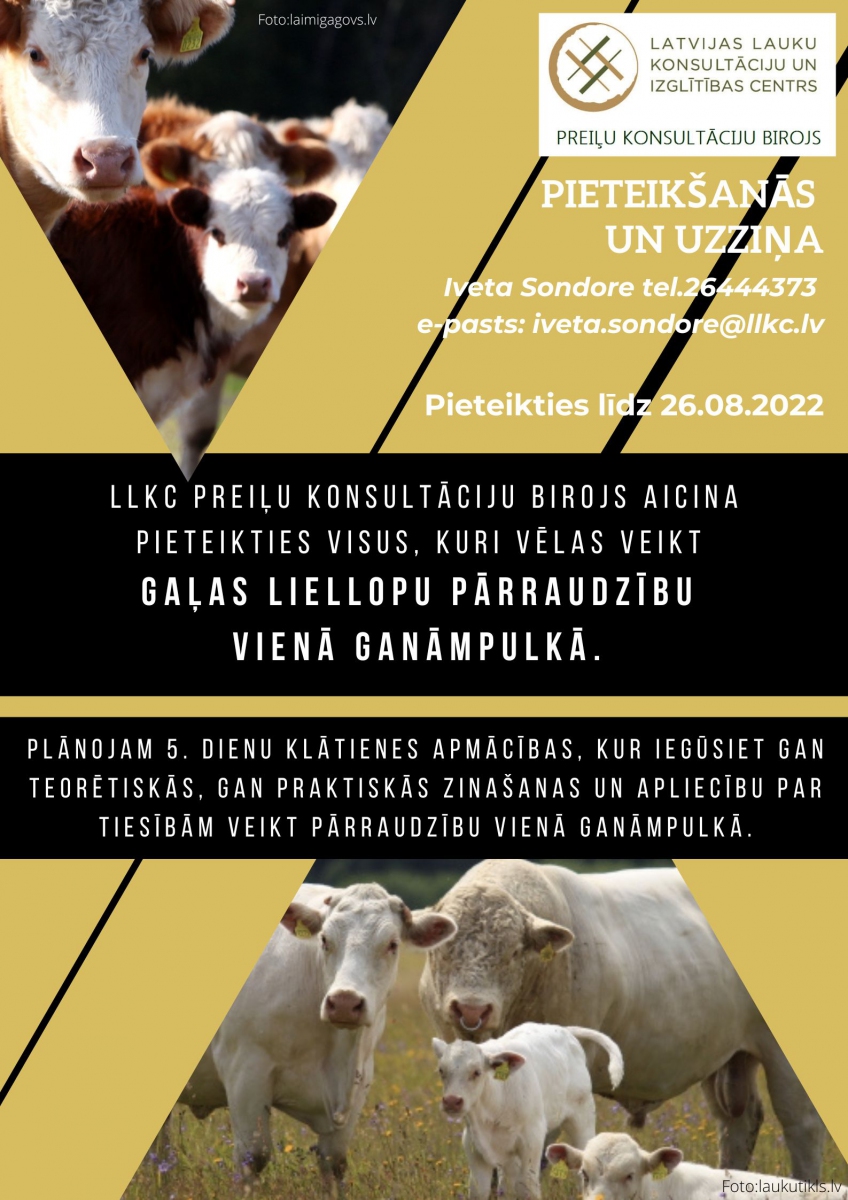 LLKC Preiļu konsultāciju birojs aicina pieteikties visus, kuri vēlas veikt gaļas liellopu pārraudzību vienā ganāmpulkā.
