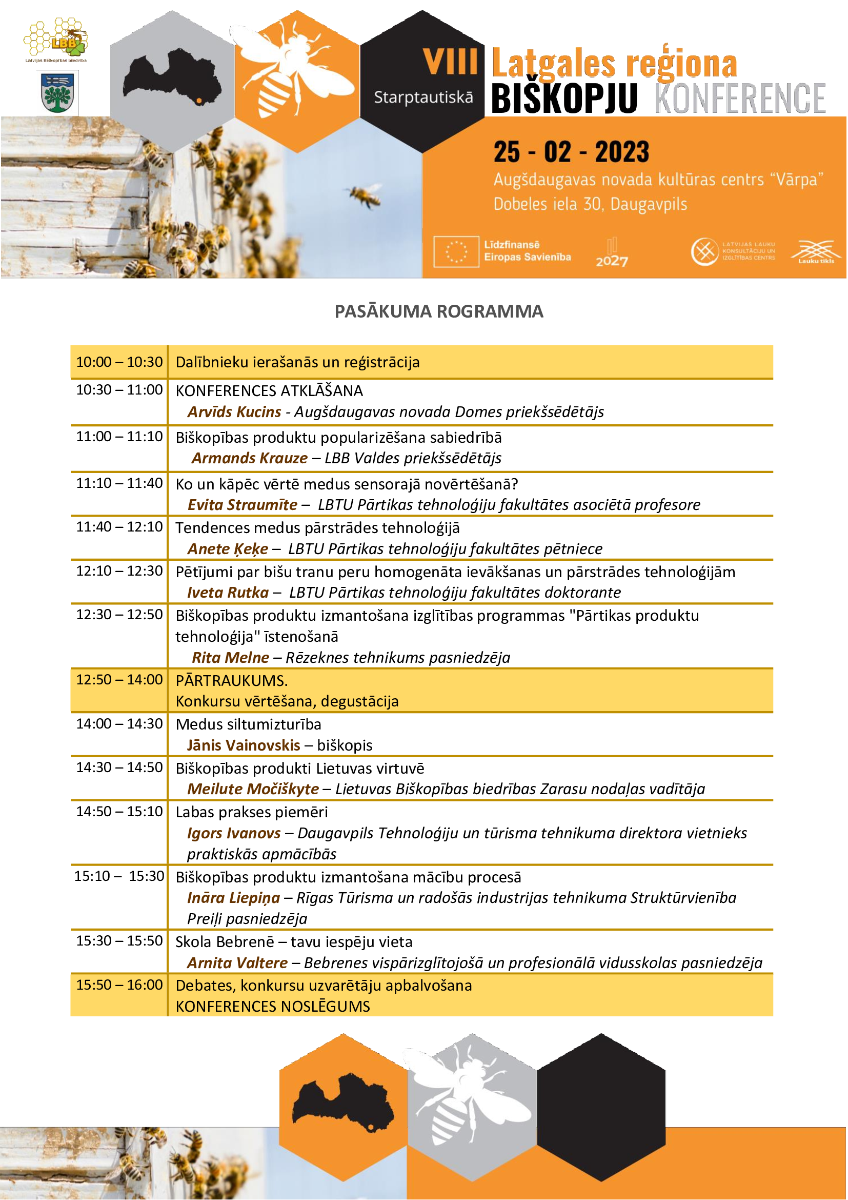 Latvijas Lauku konsultāciju un izglītības centrs, sadarbībā ar Latvijas Biškopības biedrību un Augšdaugavas novada domi Valsts Kopējās lauksaimniecības politikas tīkla aktivitāšu ietvaros organizē VIII Starptautiskās Latgales reģiona biškopju konferenci.