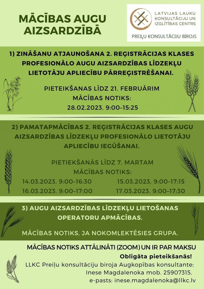 LLKC Preiļu konsultāciju birojs organizē mācības augu aizsardzībā!