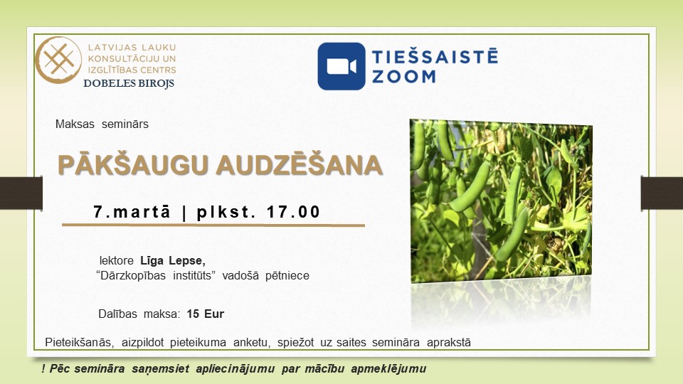 07.03 plkst. 17.00 – 19.00 Pākšaugu audzēšana,