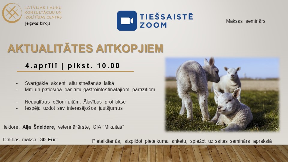04.04 plkst. 10.00 – 13:00 Aktualitātes aitkopjiem (Atnešanās, neauglība, parazīti un iespēja uzdot savus jautājumus)
