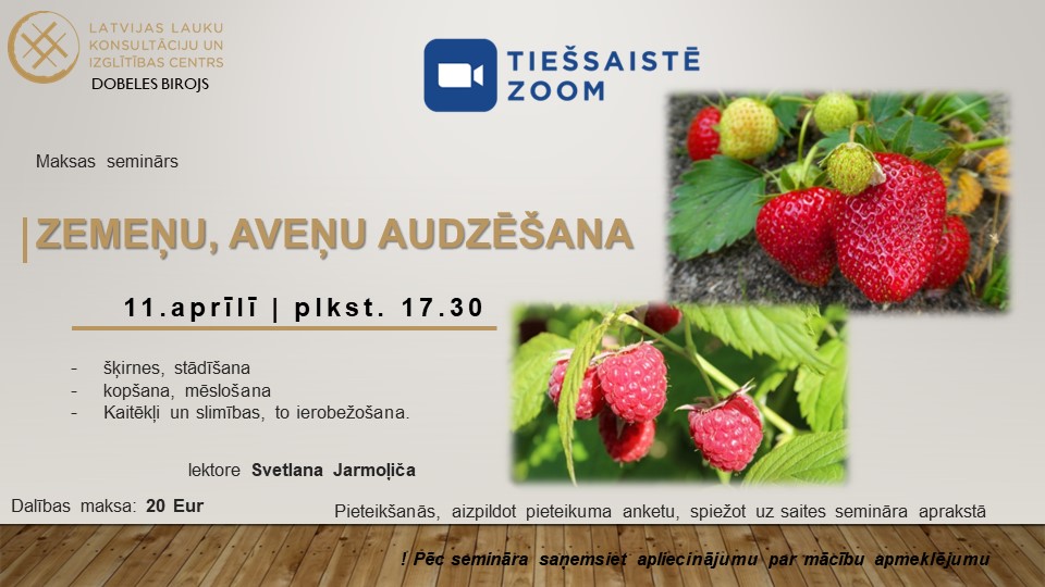 11.03 plkst. 17.30 – 20.30 Zemeņu, aveņu audzēšana,